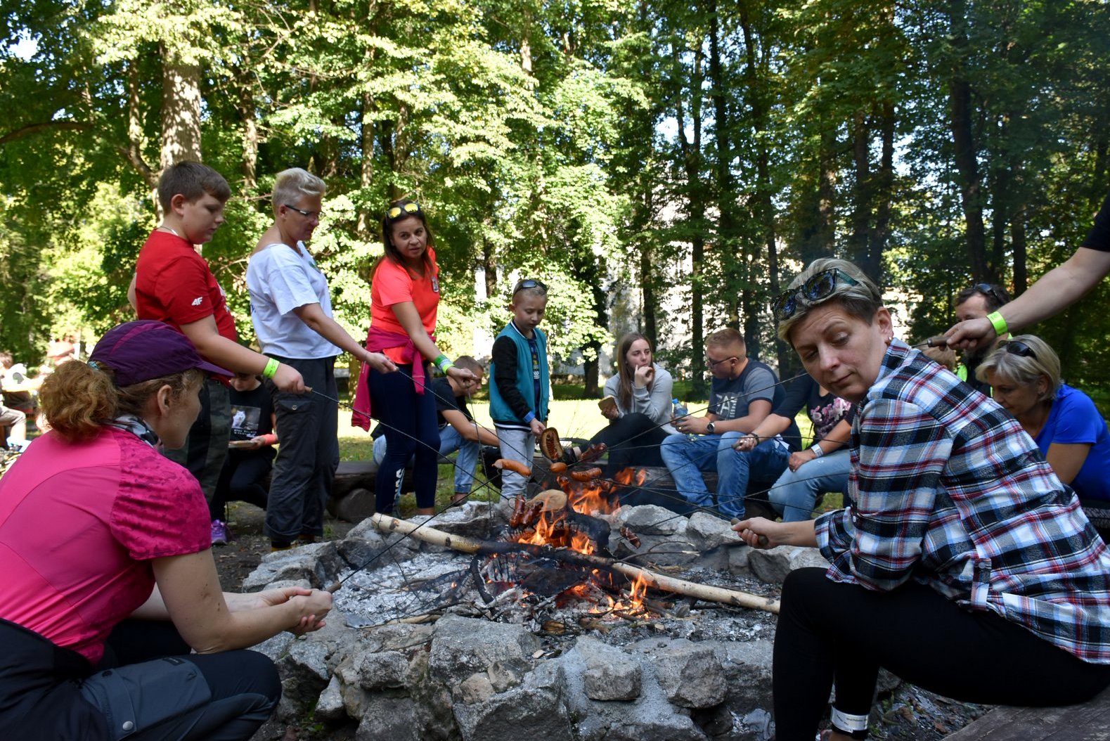 Zabawy rowerowe zakończone zostały przemarszem uczestników V Marszu Po Zdrowie z kijami nordic walking do Pałacu Bukowiec w Bukowcu, gdzie na wszystkich chętnych czekało ognisko z kiełbaskami.