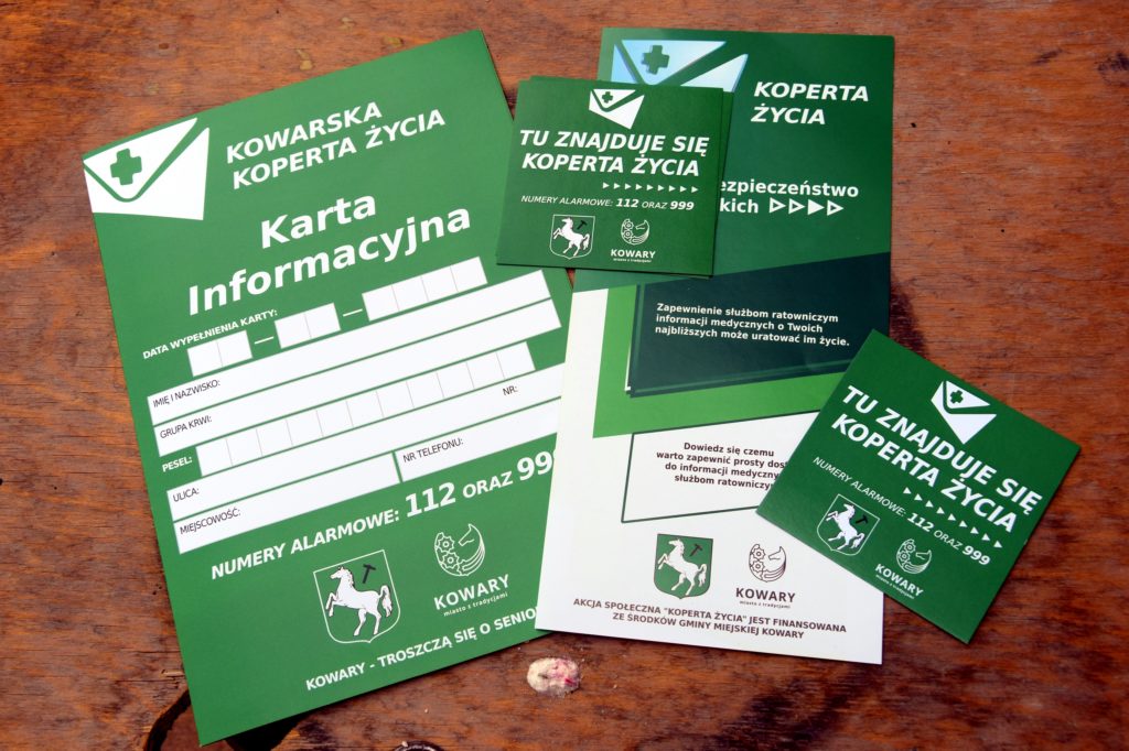 “Kowarskie Koperty Życia” można odbierać osobiście w godzinach pracy Urzędu Miejskiego w Kowarach (ul. 1 Maja 1a) tj. pn. 8:00-16:00, wt.-śr. 7:30-15:30, czw. 7:30-17:00, pt. 7:30-14:00. Zapraszamy!