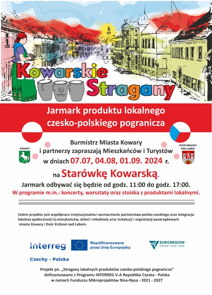 Kowarskie Stragany zagościły już na stałe w harmonogramie letnich imprez organizowanych przez Gminę Miejską Kowary. Tegoroczne jarmarki odbywać się będą jeszcze w dniach 04.08.2024, 01.09.2024 w godzinach od 11:00 do 17:00 na Kowarskiej Starówce.
