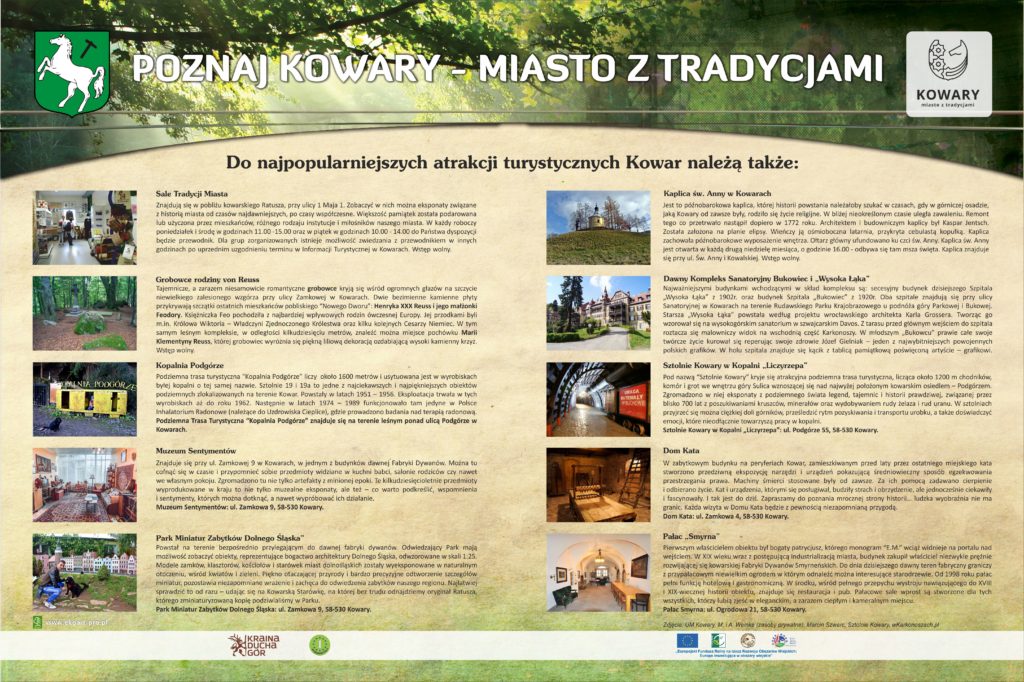 Działanie realizowane jest w ramach operacji, pt.: „Utworzenie miejsca spotkań, integracji i odpoczynku w centrum Kowar” w ramach Europejskiego Funduszu Rolnego na rzecz Rozwoju Obszarów Wiejskich: Europa inwestująca w obszary wiejskie Program Rozwoju Obszarów Wiejskich na lata 2014-2020.
