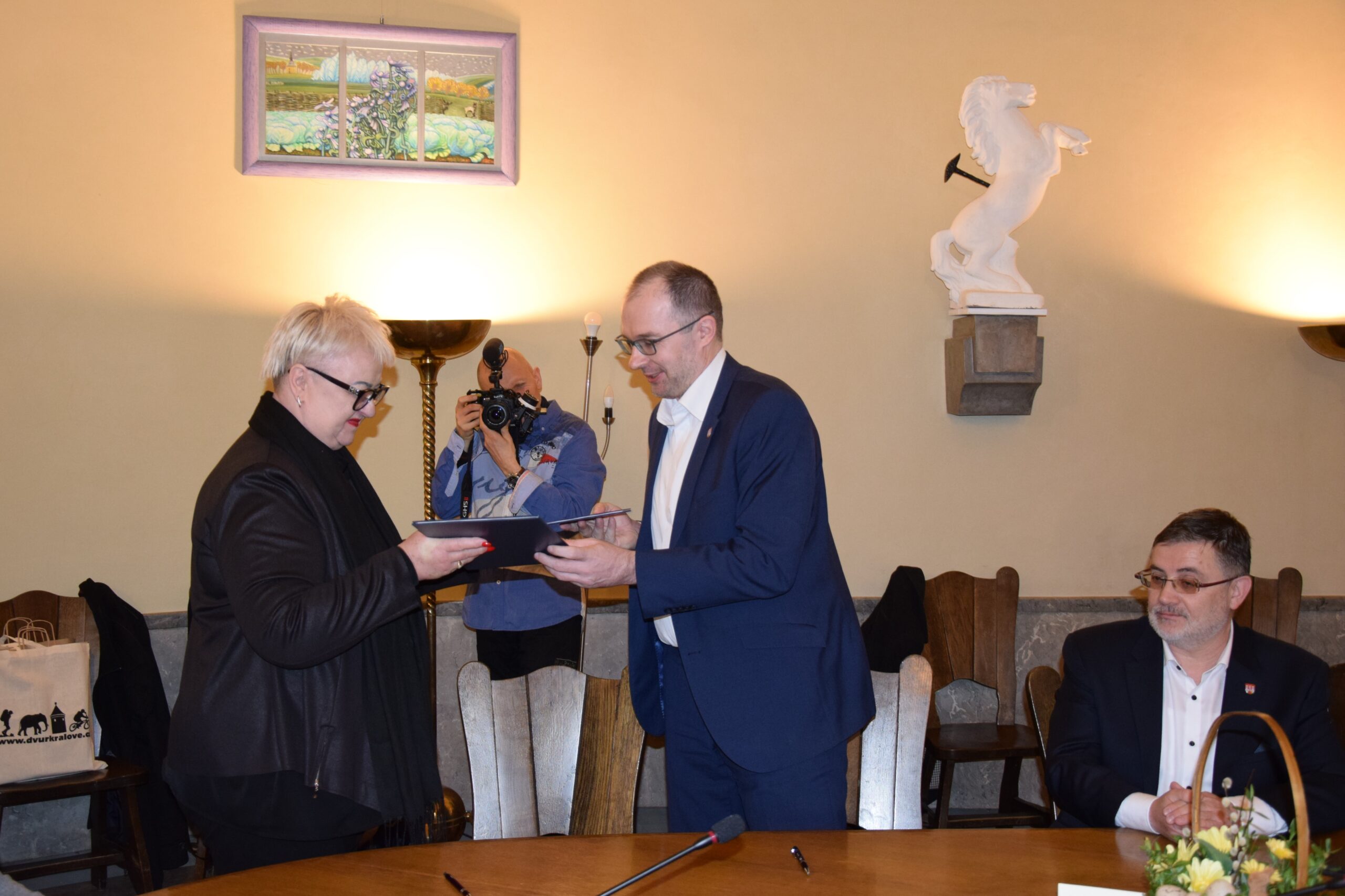W dniu 14 kwietnia br. w kowarskim ratuszu została podpisana Umowa o Wzajemnej Współpracy między miastem Dvůr Králové nad Łabą, a Gminą Miejską Kowary. Ze strony czeskiej umowę partnerską podpisał pan Burmistrz Jan Jarolím, a naszej pani Burmistrz Elżbieta Zakrzewska. Oba miasta w ten sposób zapoczątkowały współpracę w zakresie społeczno-gospodarczo-kulturalnym.