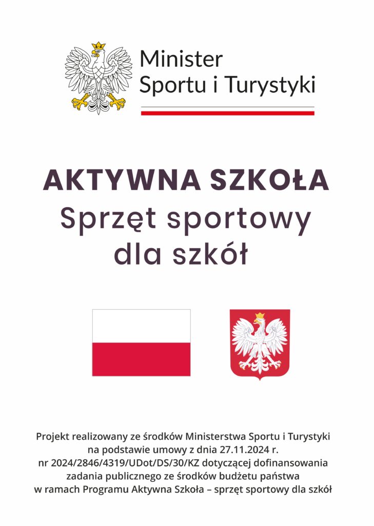 Informujemy, że Gmina Miejska Kowary realizuje projekt dofinansowany ze środków budżetu Państwa 🇵🇱 pn. “Aktywna Szkoła – Sprzęt sportowy dla Szkół”. Aktywna Szkoła to program ogłoszony przez Ministra Sportu i Turystyki do tworzenia warunków do uprawiania aktywności fizycznej skierowanej do szerokiego spektrum odbiorców, przy czym priorytetowo traktowane są zadania adresowane do dzieci i młodzieży.