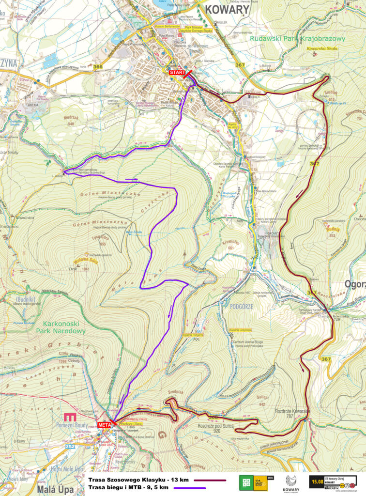 W związku z organizacją Kowary – Okraj – XI Bieg Alpejski i Wjazd MTB, na czas startu w godz. 12.25 – 12.50 zostaną również wyłączone z ruchu ulice: ul. Pocztowa ul. Leśna.