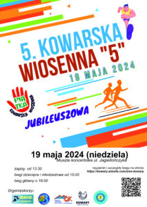 Stowarzyszenie Miłośników Sportu Kowary, serdecznie zaprasza na JUBILEUSZOWĄ 5. Wiosenną Kowarską “Piątkę”.