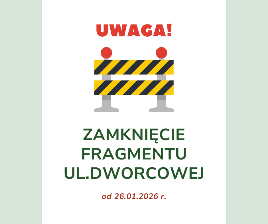 Zamknięcie fragmentu ul. Dworcowej Data publikacji 23 stycznia 2026 by Mariusz Dmochowski Informujemy, że w terminie od 26.01.2026 r. do odwołania fragment ul. Dworcowej zostanie wyłączony z ruchu (zgodnie z załączonym rysunkiem).