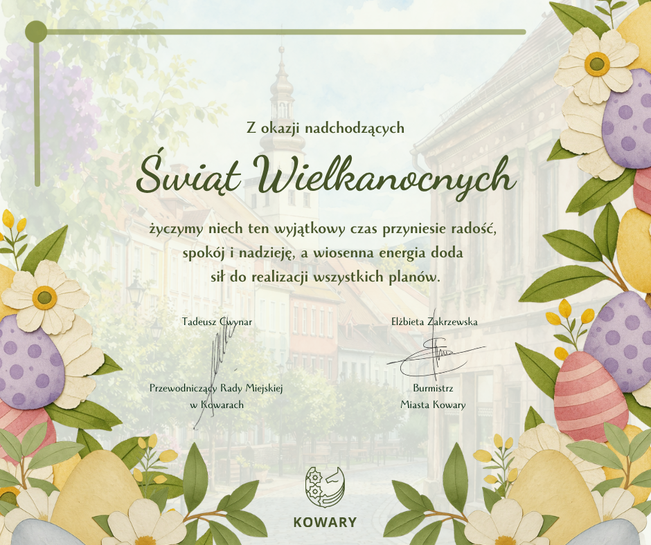 Z okazji nadchodzących Świąt Wielkanocnych życzymy niech ten wyjątkowy czas przyniesie radość, spokój i nadzieję, a wiosenna energia doda sił do realizacji wszystkich planów.